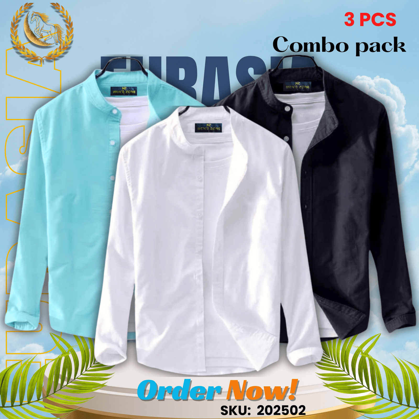 100% Cotton Oxford Long Sleeve Casual Shirt For Men’s (Only Shirt), Combo Pack 3 PCS