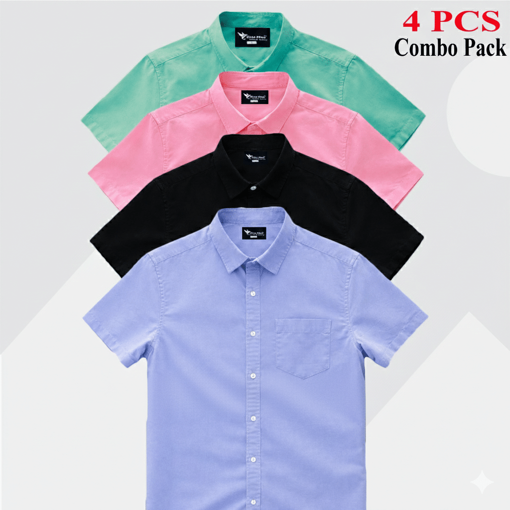 4 Pes Combo Short Sleeve Shirt – Nevy Blue, Ash, White & Pink