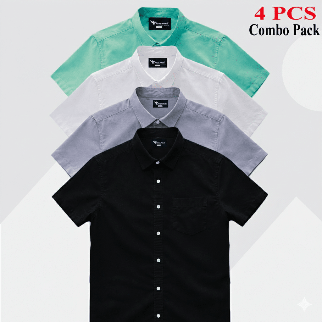 4 Pes Combo Short Sleeve Shirt – Nevy Blue , White , Pest & Sky Blue.