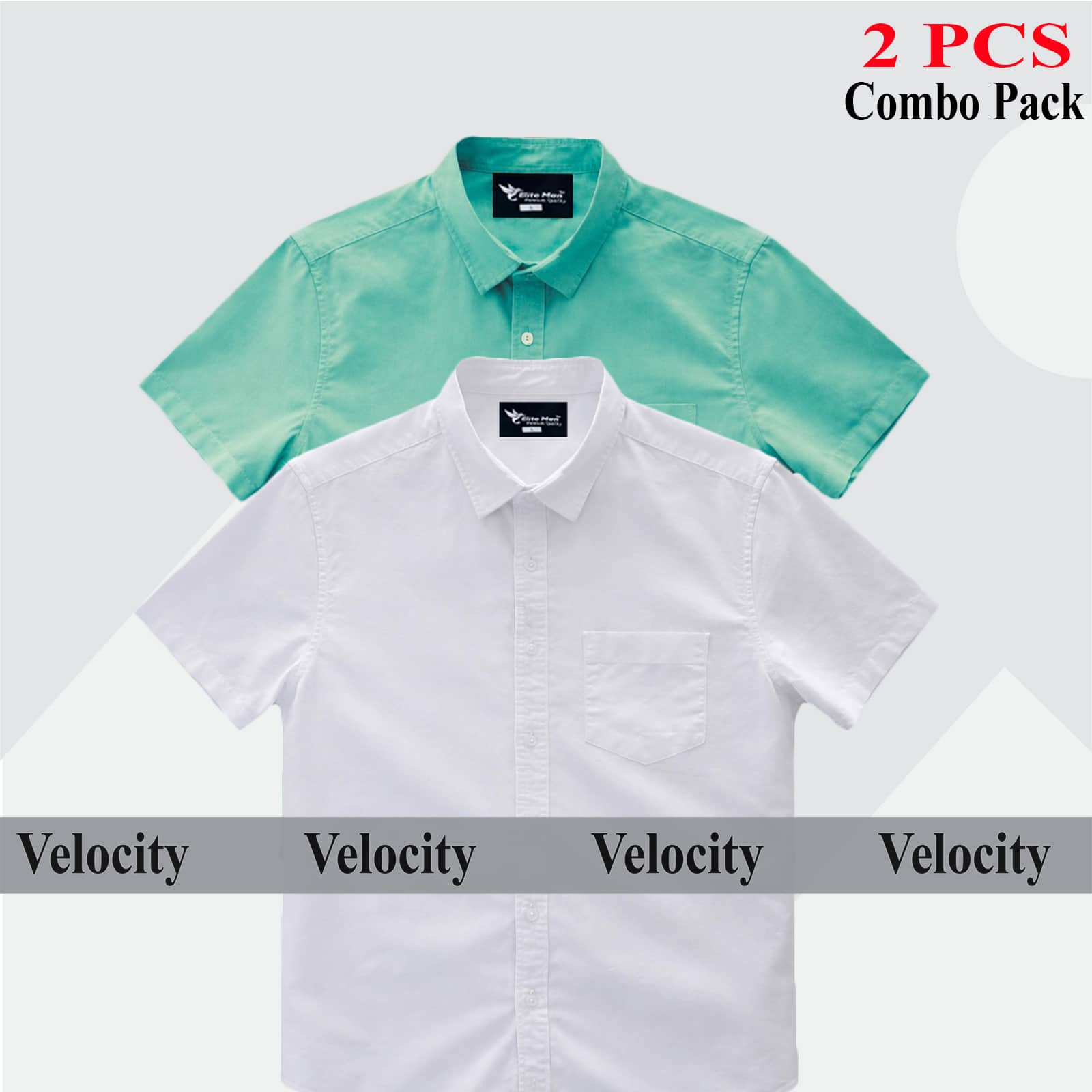 100% Oxford Cotton Fabric Short Sleeve Shirt For Men’s – White & Pest.
