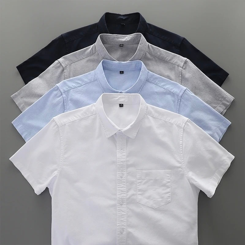 100% Oxford Cotton Fabric Short Sleeve Shirt For Men’s – Sky Blur, Ash , Pest & White