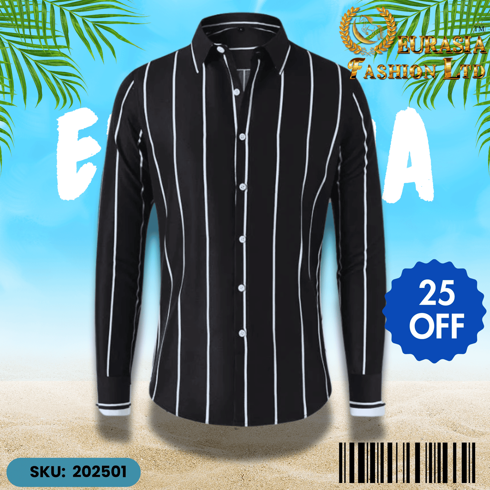Mens Striped Shirt Business Casual Long Sleeve Shirt Korean Style Slim Mens Shirt
