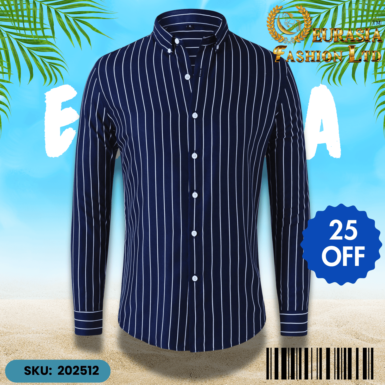 Mens Striped Shirt Business Casual Long Sleeve Shirt Korean Style Slim Mens Shirt