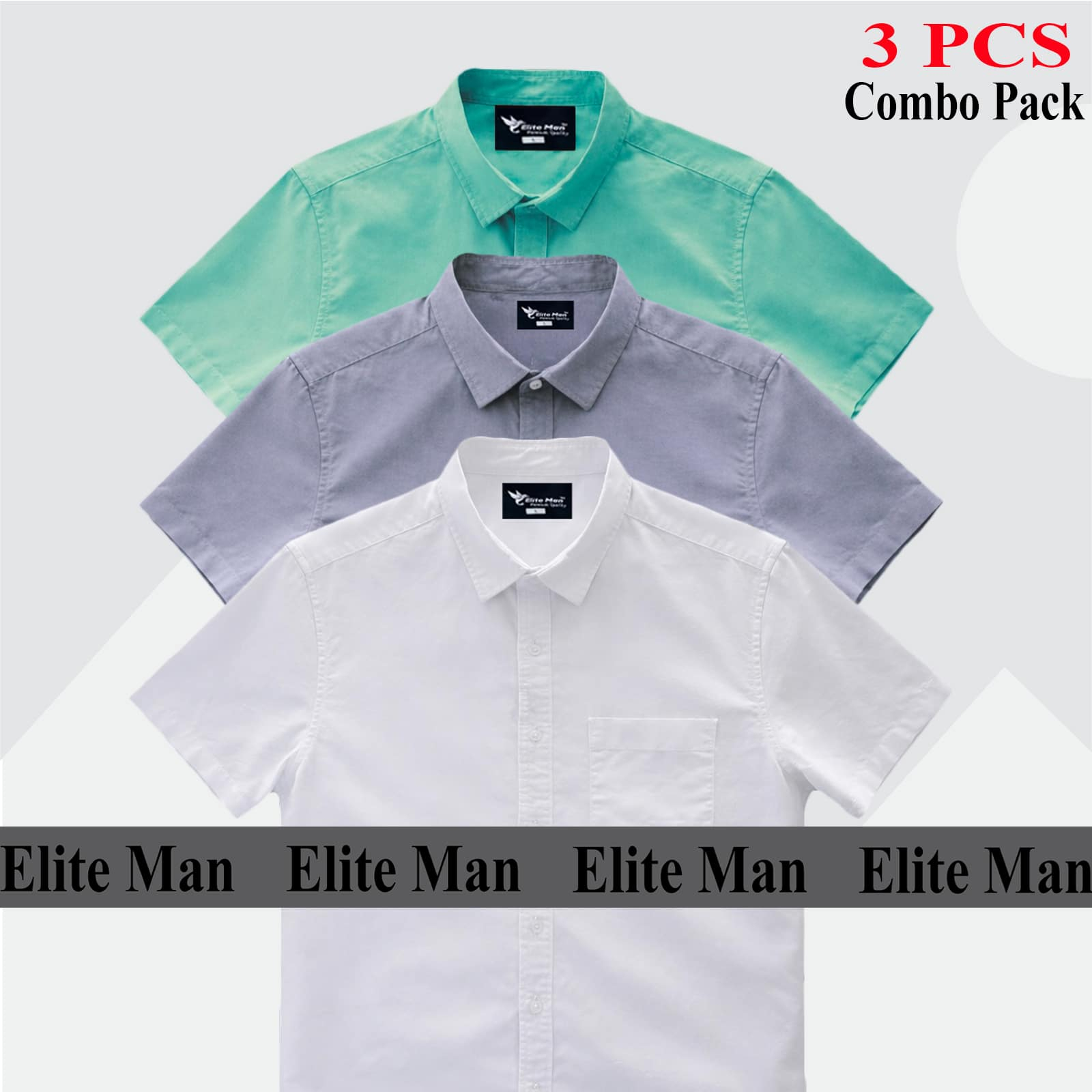 Premium Quality 100% Oxford Cotton Fabric Short Sleeve Shirt For Men’s -Ash, White & Pest.