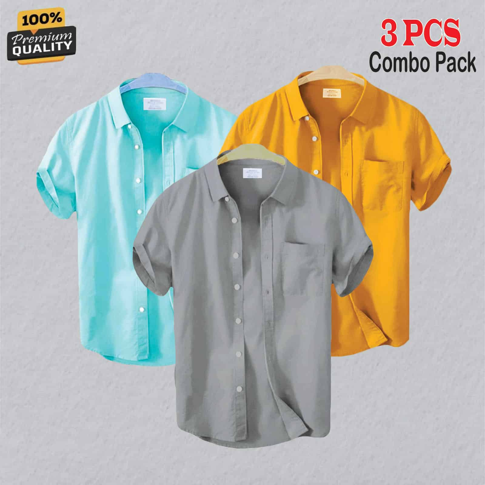 Premium Quality 100% Oxford Cotton Fabric Short Sleeve Shirt For Men’s – Kathali, Ash & Pest.