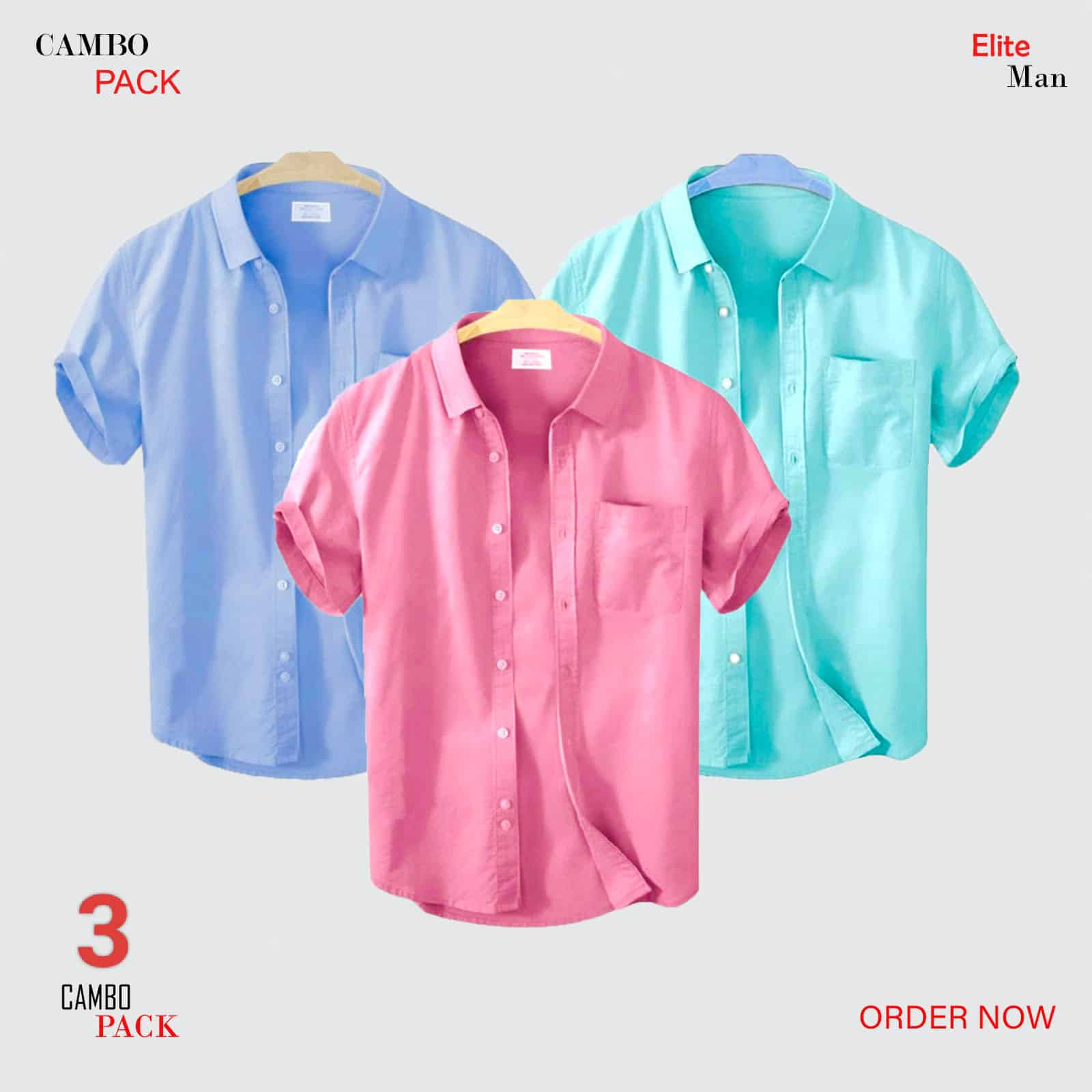 Premium Quality 100% Oxford Cotton Fabric Short Sleeve Shirt For Men’s -Pest, Sky blue & Pink