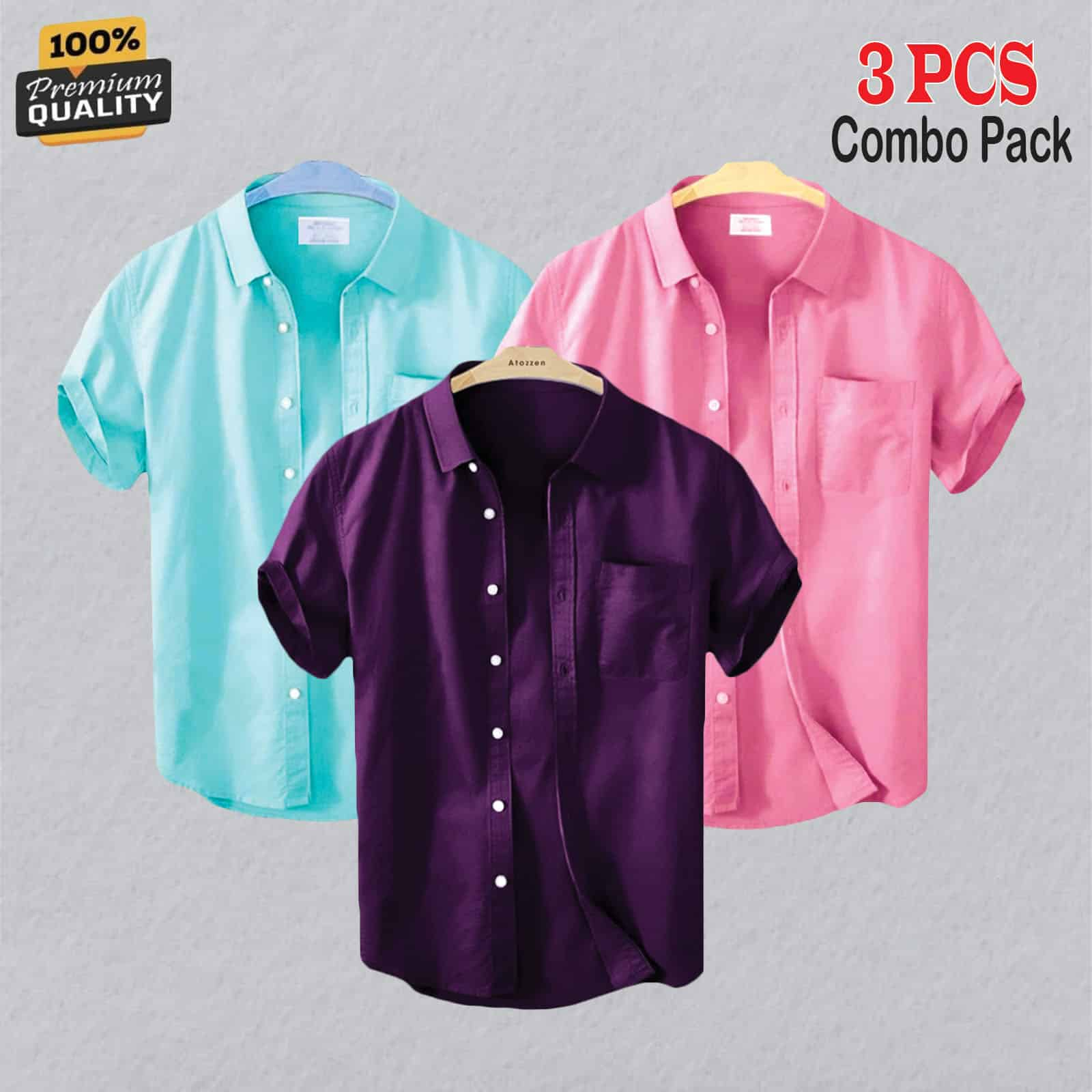 Premium Quality 100% Oxford Cotton Fabric Short Sleeve Shirt For Men’s – Purple, Pest & Pink.