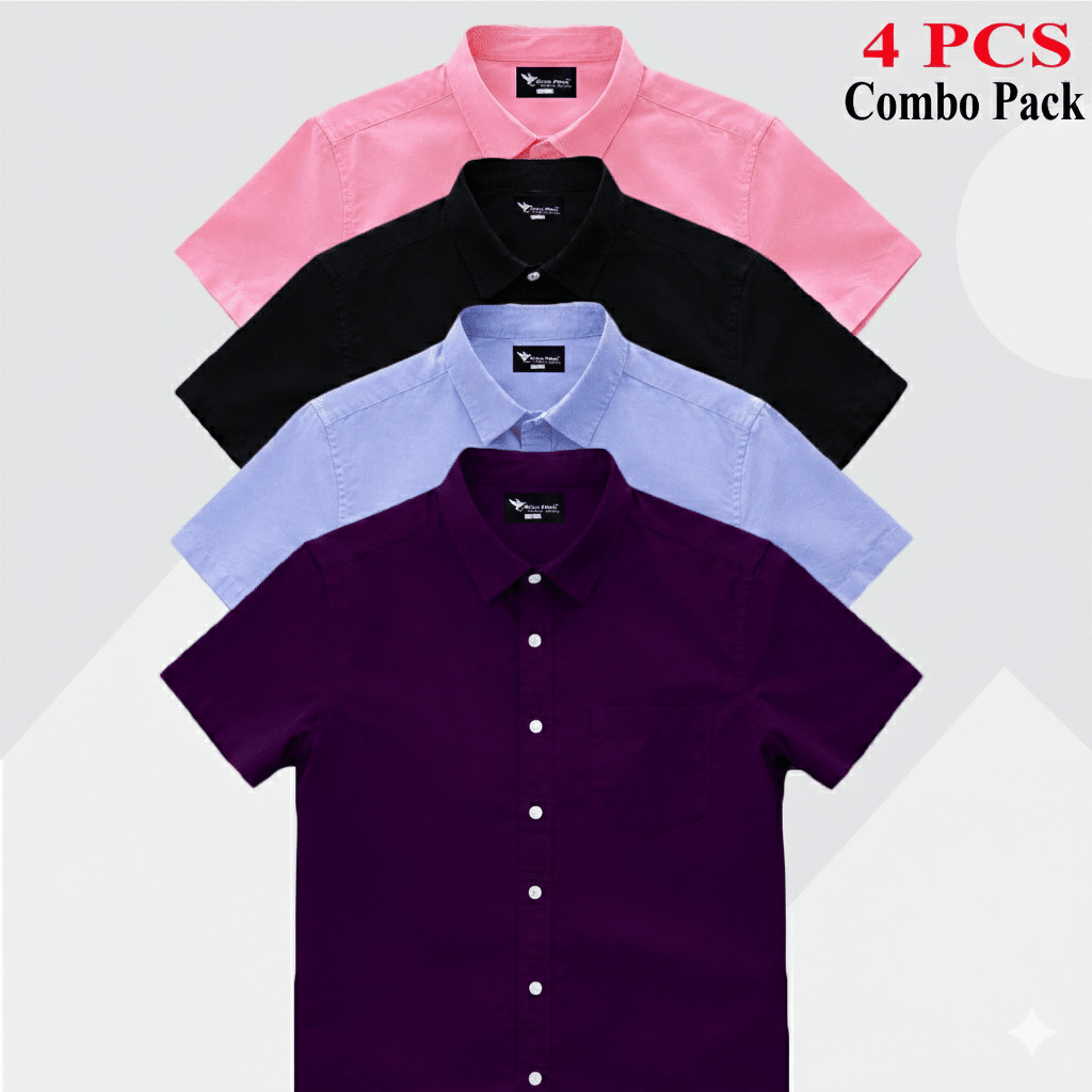 4 Pes Combo Short Sleeve Shirt – White, Kathali, Ash & Nevy Blue.