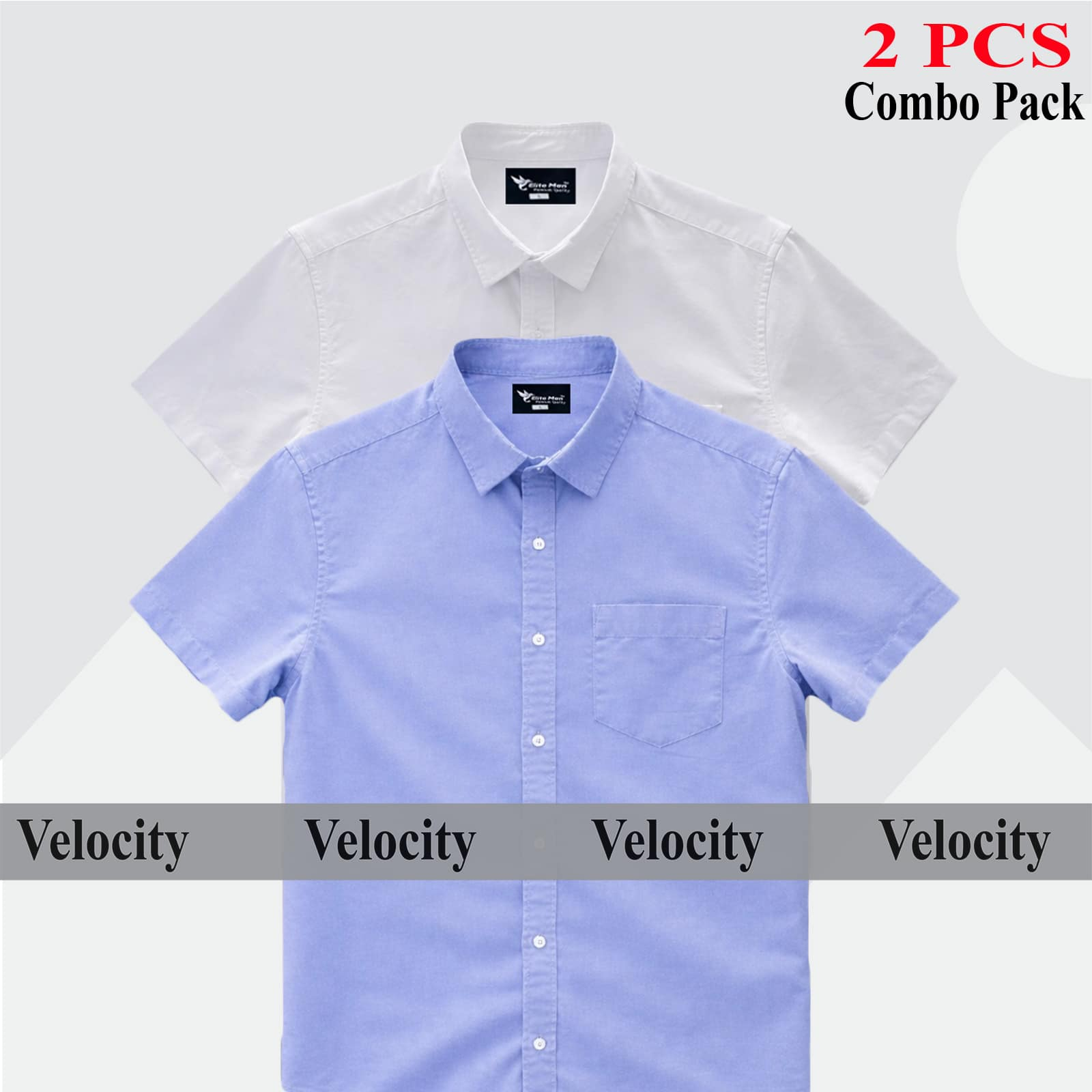 Premium Quality 100% Oxford Cotton Fabric Short Sleeve Shirt For Men’s – Sky Blur & White