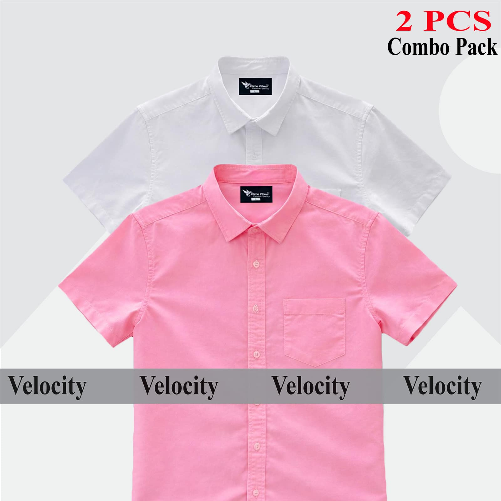 Premium Quality 100% Oxford Cotton Fabric Short Sleeve Shirt For Men’s – White & Pink